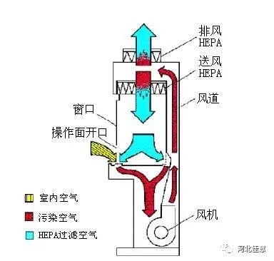 Ⅰ级安全柜有前窗操作口,操作者可通过前窗操作口在安全柜内进行操作。前窗操作口向内吸入的负压气流保护操作人员的安全;排出气流经高效过滤器过滤后排出安全柜保护环境。Ⅰ级生物安全柜只保护工作人员和环境而不保护样品。气流原理和实验室通风橱一样,不同之处在于排气口安装有HEPA(空气粒子过滤器)过滤器。一级生物安全柜由于不能保护柜内样品,目前已较少使用。