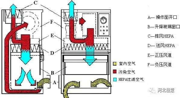 实验区有垂直层流;前窗进风气流平均流速≥0.4m/s;可向室内排风;循环气流比例为70%;有正压污染区;不能用于挥发性有毒化学物、放射性物质的实验操作。