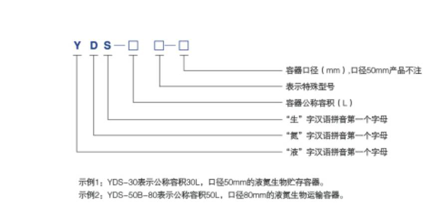 液氮生物容器产品型号编制方法: