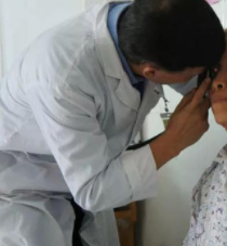向被检查者介绍检查的目的和步骤,告知检查无风险,但是明亮的光线可引起眼部不适的感觉。请被检查者摘下框架眼镜,但是不需要摘除隐形眼镜。