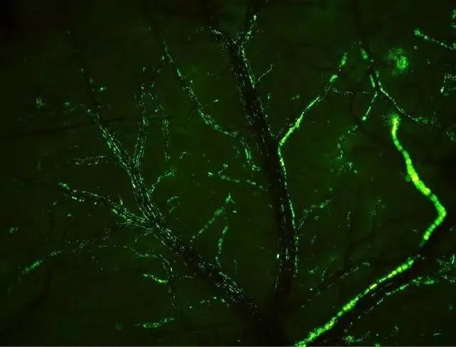 图片介绍:这是对小鼠脑血管进行的活体成像,通过加入荧光纳米球可以间接看到血流的方向和轨迹。将这些动态过程叠加起来就成为这样一张照片:圣诞夜,摇曳光闪的圣诞树旁,一条愈加明亮的回家路。仰望斑斑星空,远处灯火朦胧。这张照片是研究人员在圣诞节那天采集的,美丽的照片为他们带来了节日的问候。