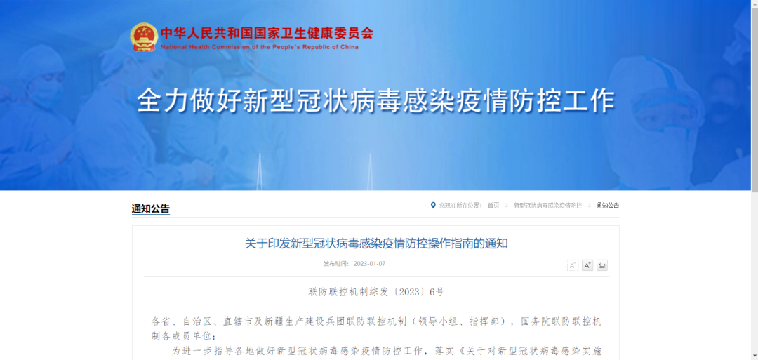 1月7日,国务院联防联控机制综合组发布《关于印发新型冠状病毒感染疫情防控操作指南的通知》。
