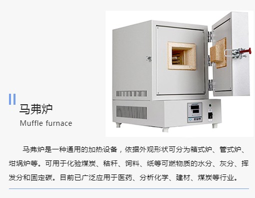 马弗炉是一种通用的加热设备,依据外观形状可分为箱式炉、管式炉、坩埚炉等。可用于化验煤炭、秸秆、饲料、纸等可燃物质的水分、灰分、挥发分和固定碳。目前已广泛应用于医药、分析化学、建材、煤炭等行业。