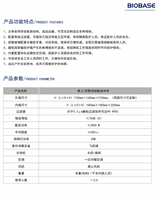 前窗玻璃配置长橡胶手套、对话系统,使采样方便快速,全程无需直接接触被采样人员;