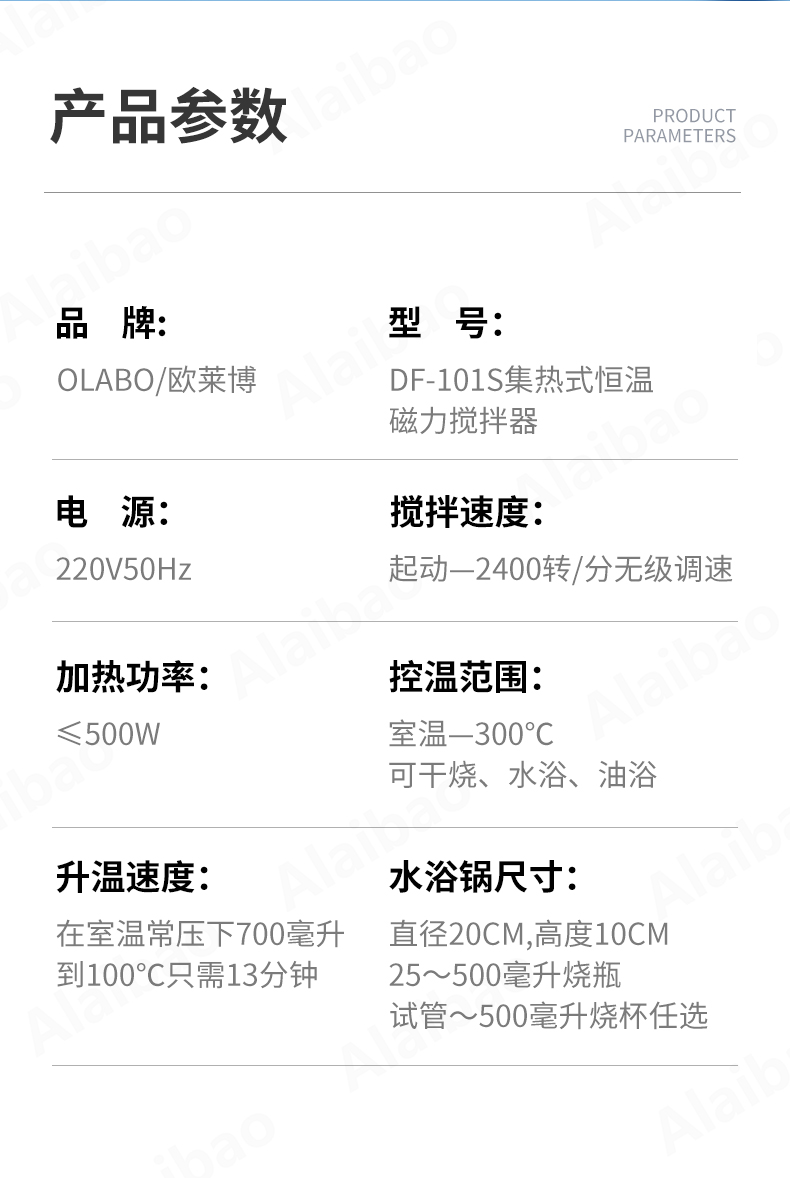欧莱博DF-101S集热式恒温磁力搅拌器,室温—300℃(可干烧、水浴、油浴)升温速度在室温常压下700毫升到100℃只需13分钟