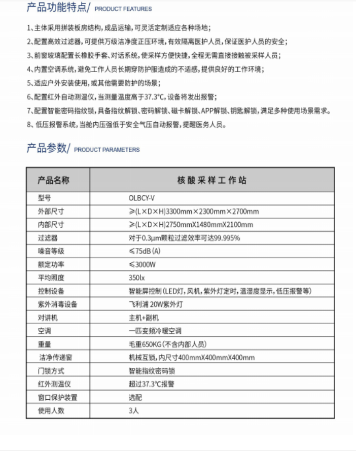 (1)外部尺寸≥(L×D×H)3300mm×2300mm×2700mm;