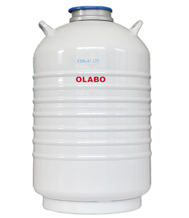 欧莱博YDS-47-127-10T液氮罐,采用高强度铝合金制造,属于铝合金生物液氮罐,配有保护套,保护罐体。