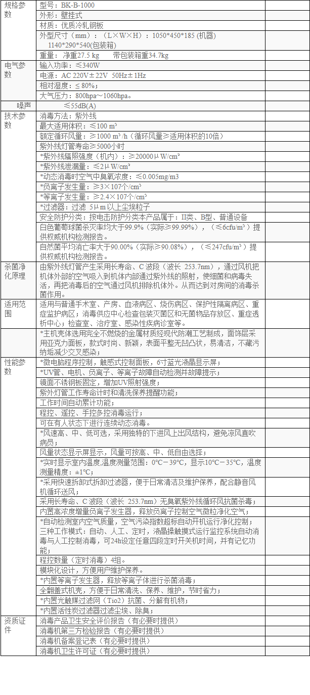> 博科BK-B-1000空气消毒机_壁挂式空气消毒机