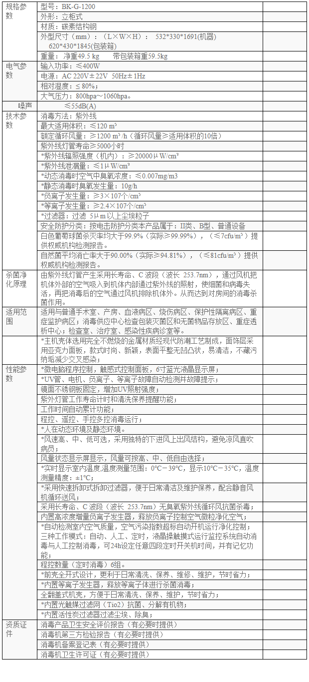博科BK-G-1200(豪华款)空气消毒机性能特点